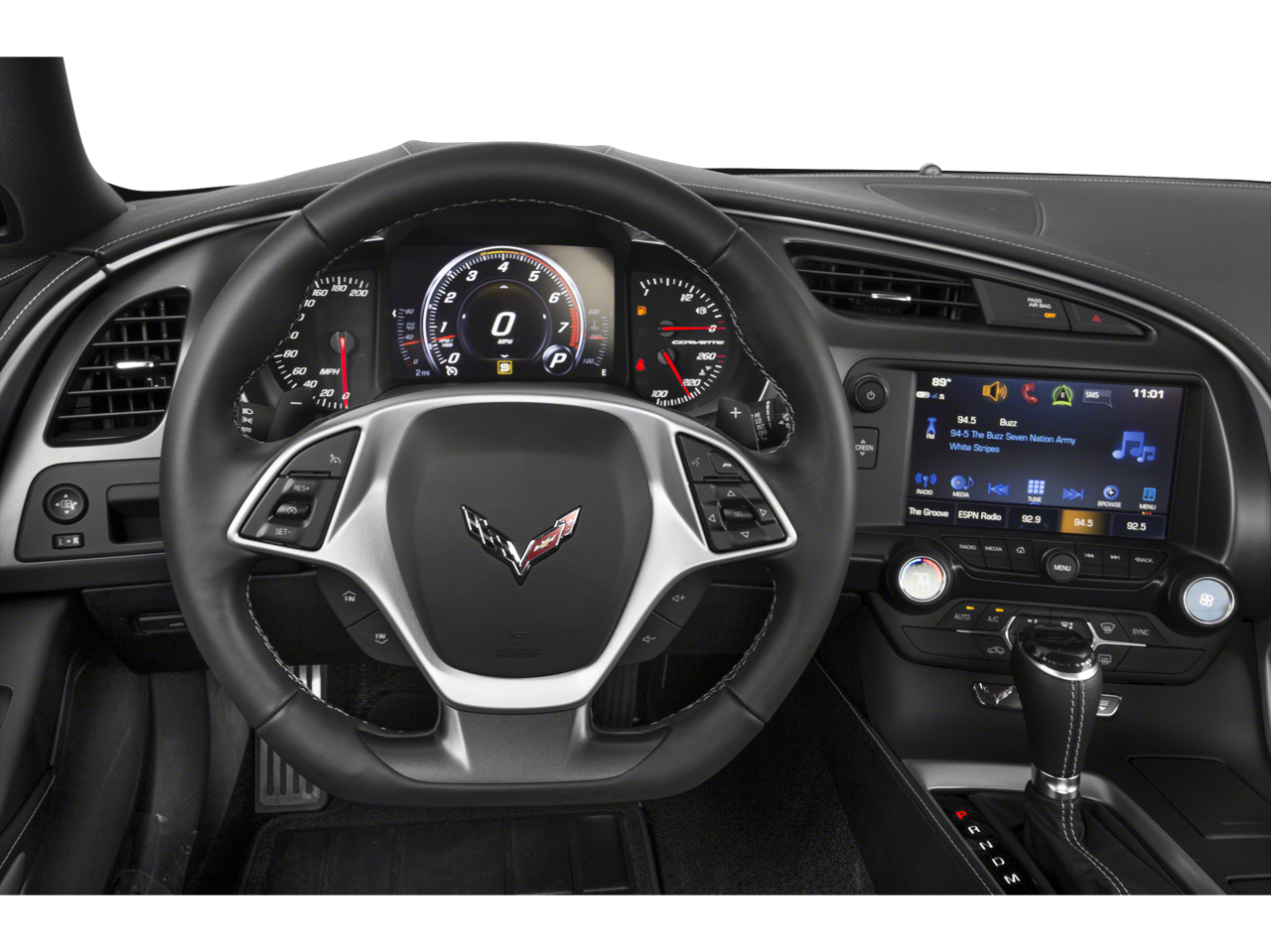 Inside, the Corvette Stingray 1LT pampers you with a host of premium features, including a Bose premium sound system, dual-zone automatic climate control, and a leather-wrapped steering wheel. The spacious cabin and comfortable GT bucket seats provide a refined and luxurious environment, perfect for long drives or weekend getaways.
