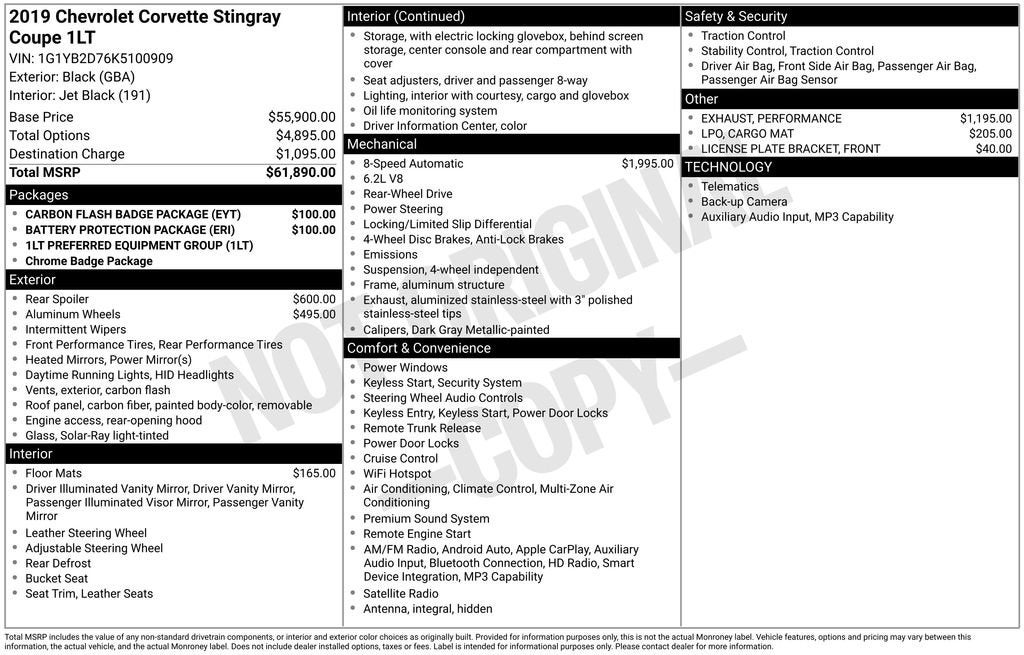 2019 Chevrolet Corvette Stingray 1LT